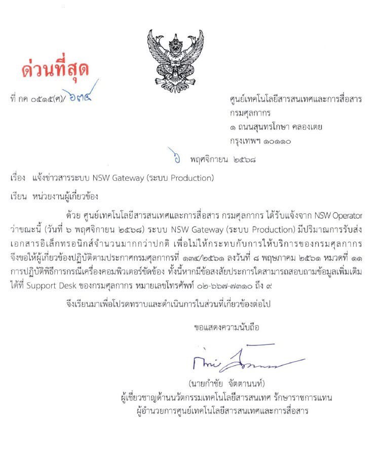 แจ้งข่าวสารระบบ NSW Gateway (ระบบ Production)