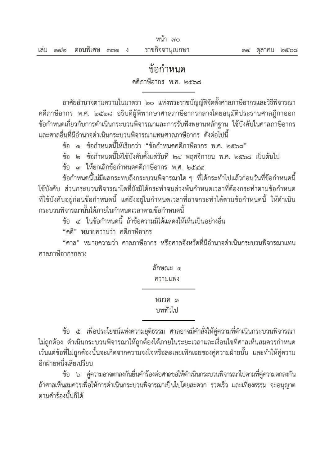 “ข้อกำหนดคดีภาษีอากร พ.ศ. 2568” ประกาศใช้ 24 พ.ย. 68 ปรับปรุงกระบวนพิจารณาคดีแพ่ง-อาญา