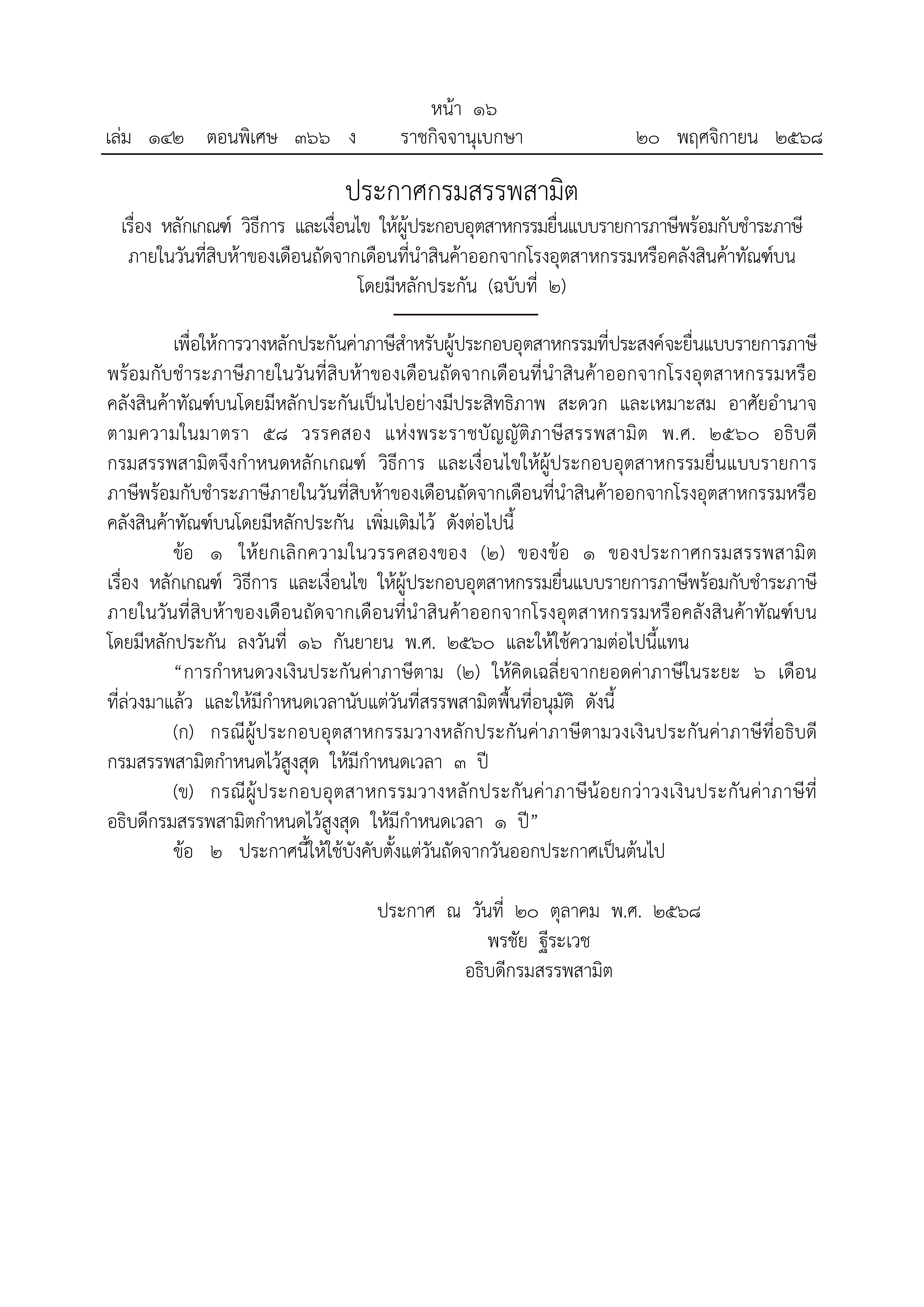 ประกาศกรมสรรพสามิต เรื่อง หลักเกณฑ์ วิธีการ และเงื่อนไข ให้ผู้ประกอบอุตสาหกรรมยื่นแบบรายการภาษีฯ