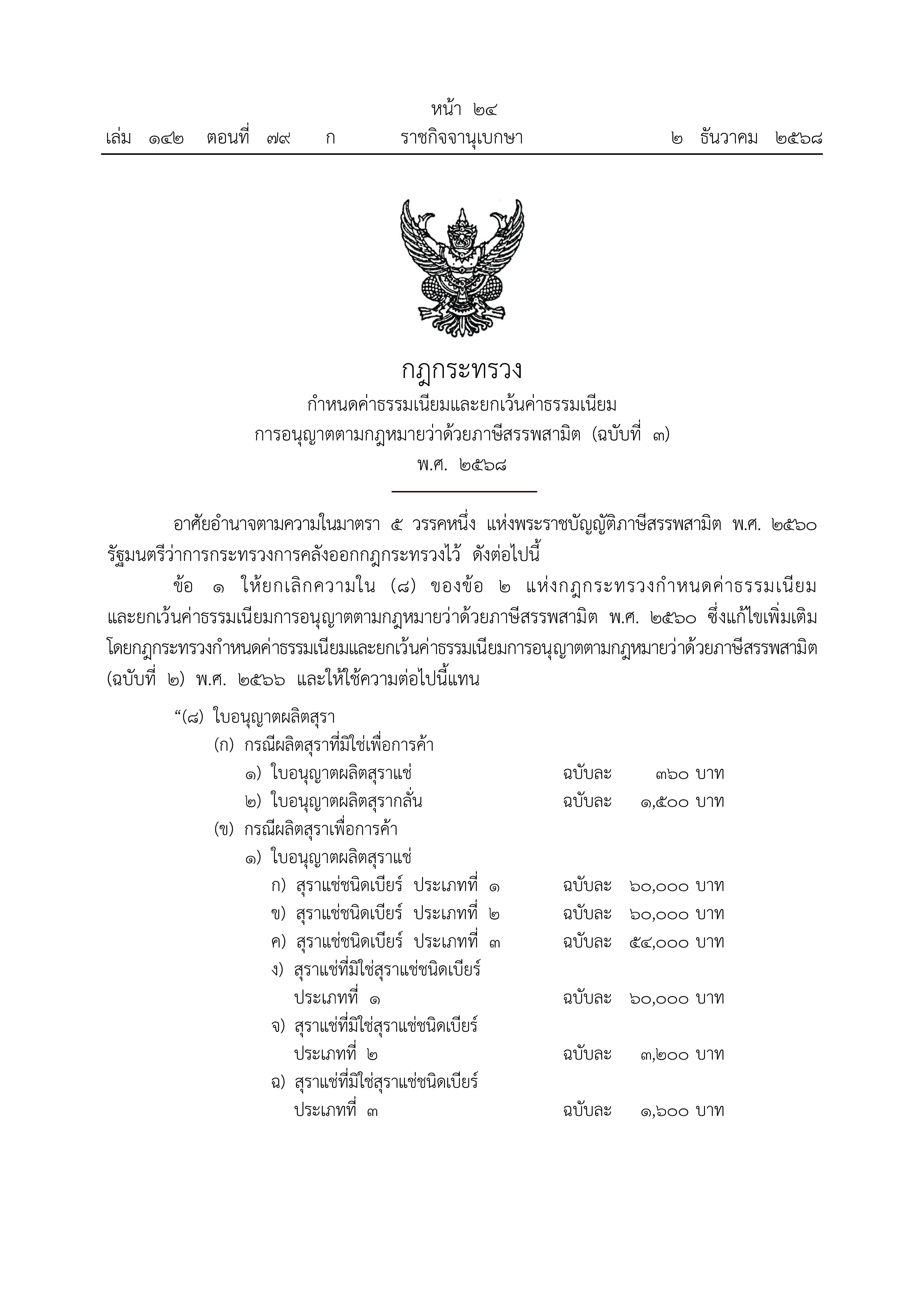 กฎกระทรวง กำหนดค่าธรรมเนียมและยกเว้นค่าธรรมเนียม การอนุญาตตามกฎหมายว่าด้วยภาษีสรรพสามิต (ฉบับที่ 3)