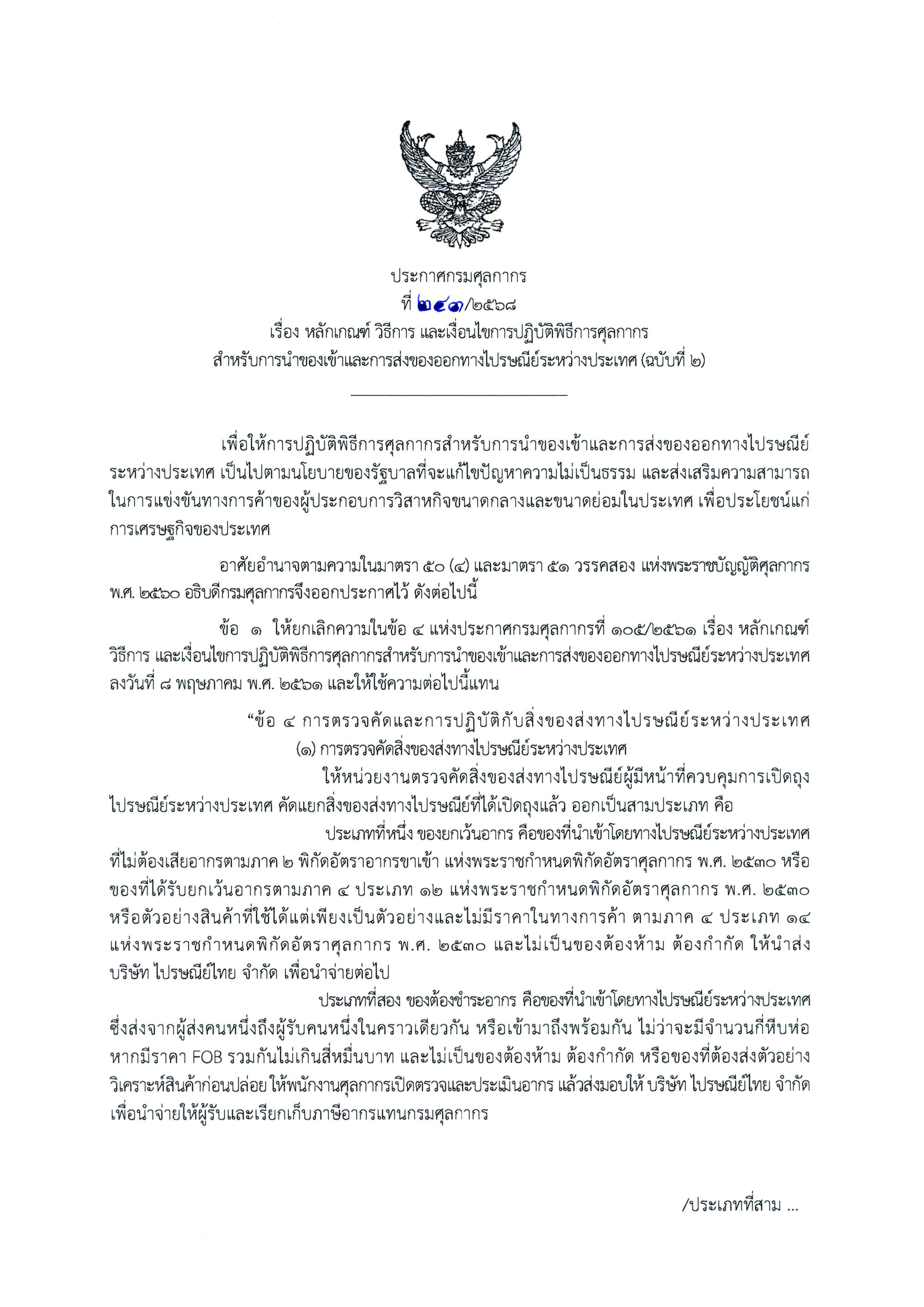ประกาศกรมศุลกากรที่ 243/2568 เรื่องหลักเกณฑ์ วิธีการ และเงื่อนไขการปฏิบัติพิธีการศุลกากรฯ