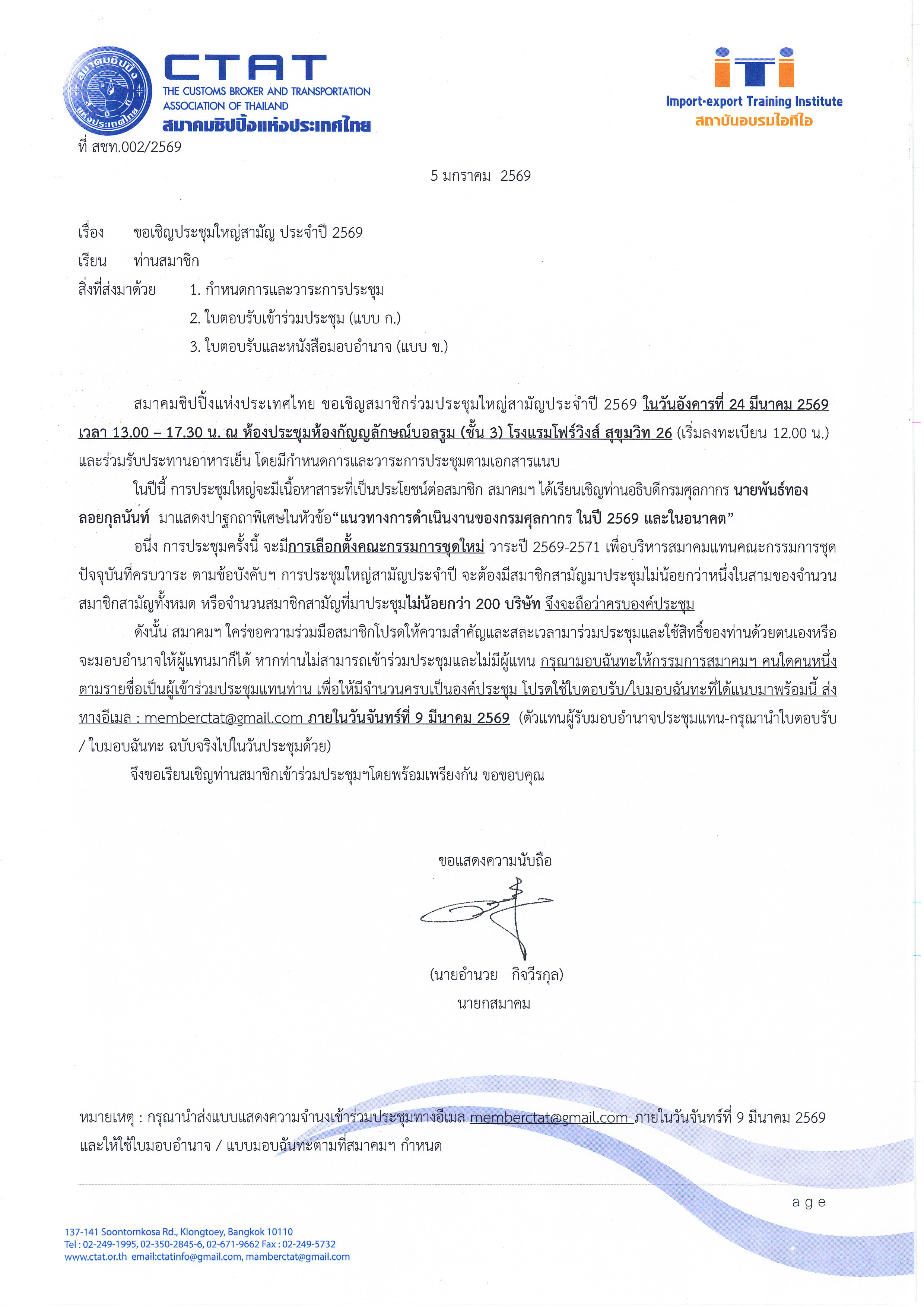 ขอเชิญสมาชิก CTAT ร่วมประชุมใหญ่สามัญประจำปี 2569