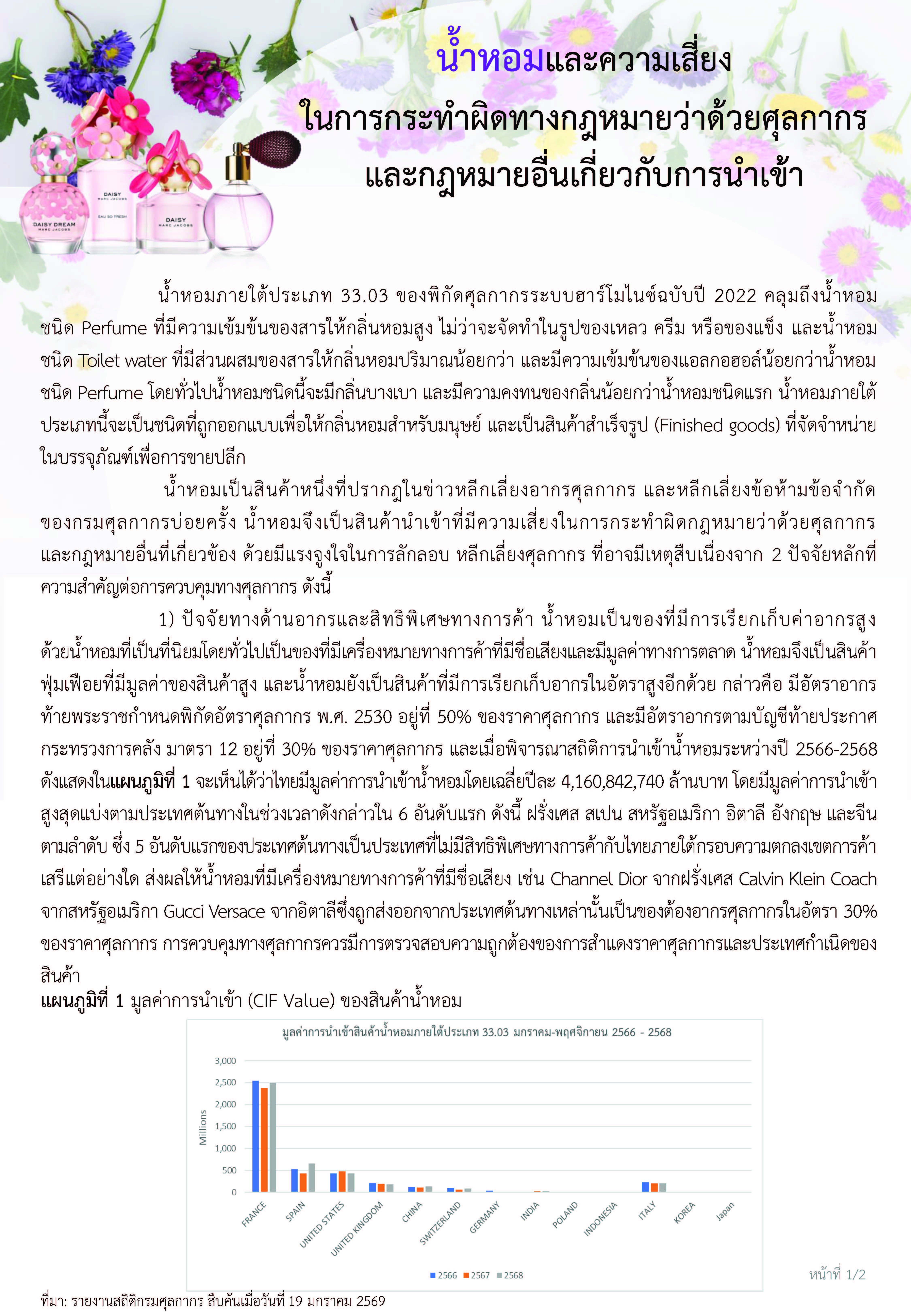 กรมศุลกากร ประชาสัมพันธ์ บทความวิชาการ น้ำหอมและความเสี่ยงในการ นำเข้า (Import) กระทำผิดทำกฎหมาย