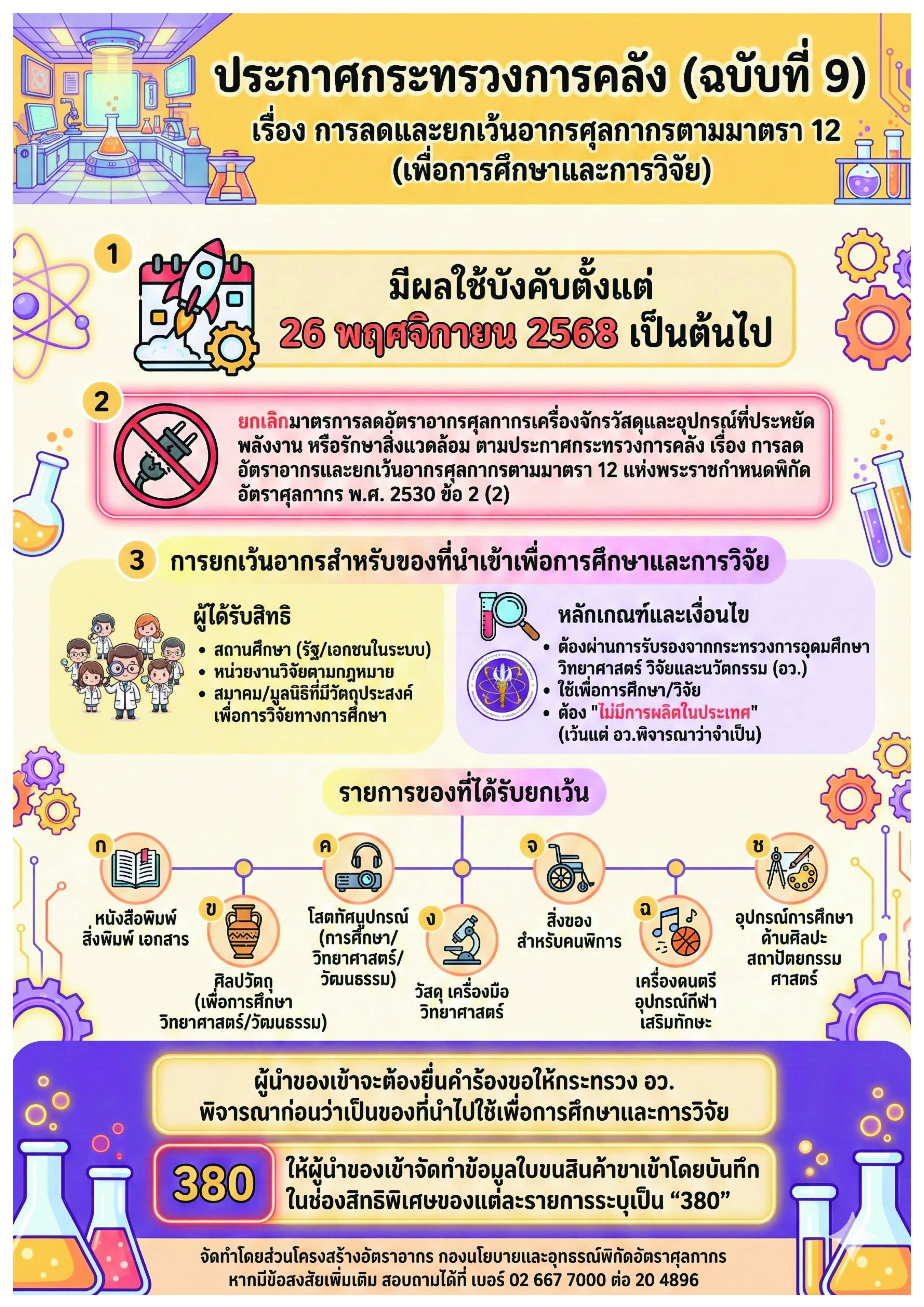 ประกาศกระทรวงการคลัง เรื่อง การลดและยกเว้นอากรศุลกากร ตามมาตรา 12 (ฉบับที่ 9) เพื่อการศึกษาฯ