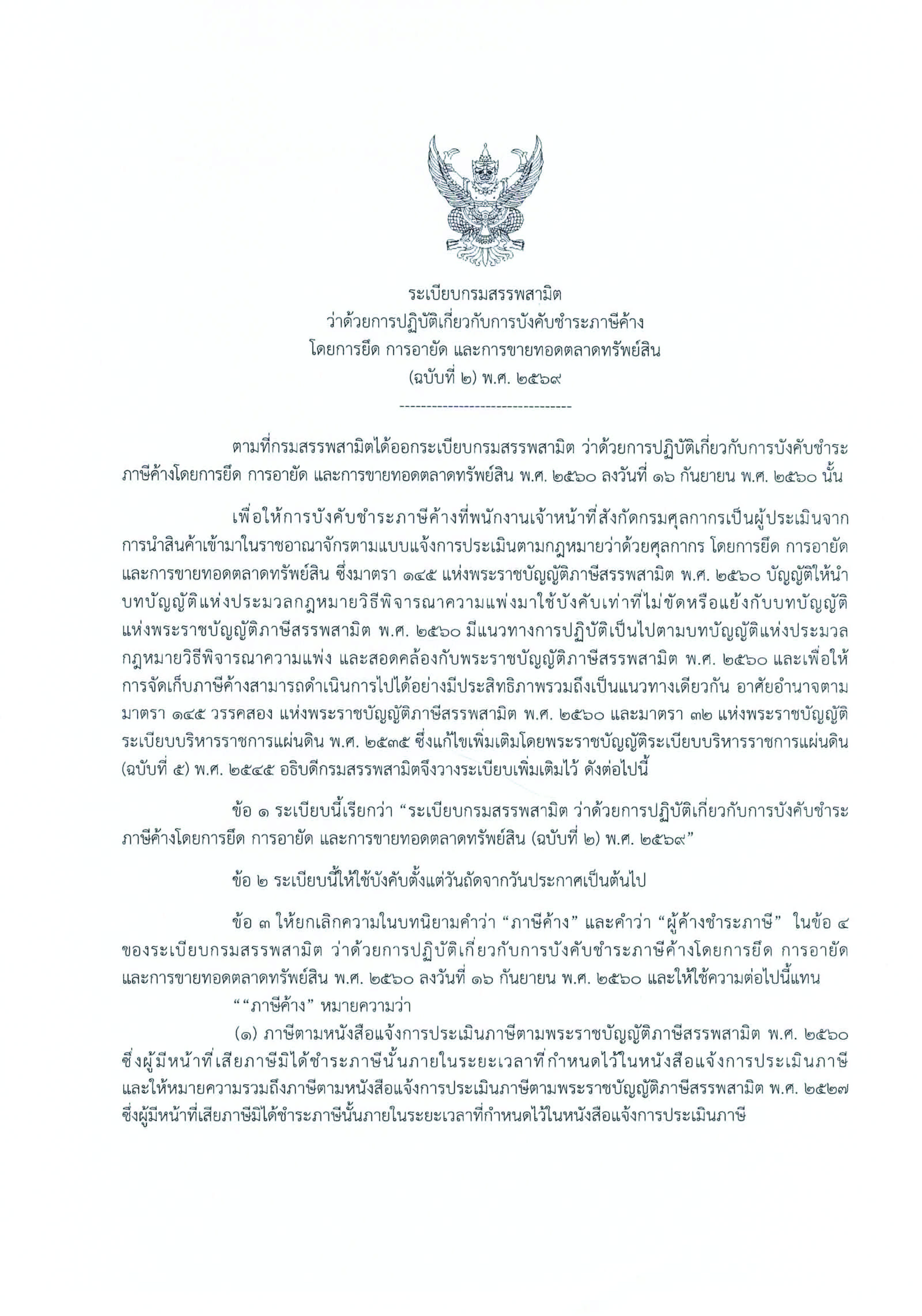 ระเบียบกรมสรรพสามิต ว่าด้วยการปฏิบัติเกี่ยวกับการบังคับชำระภาษีค้าง โดยการยึด และการขายทอดตลาดทรัพย์