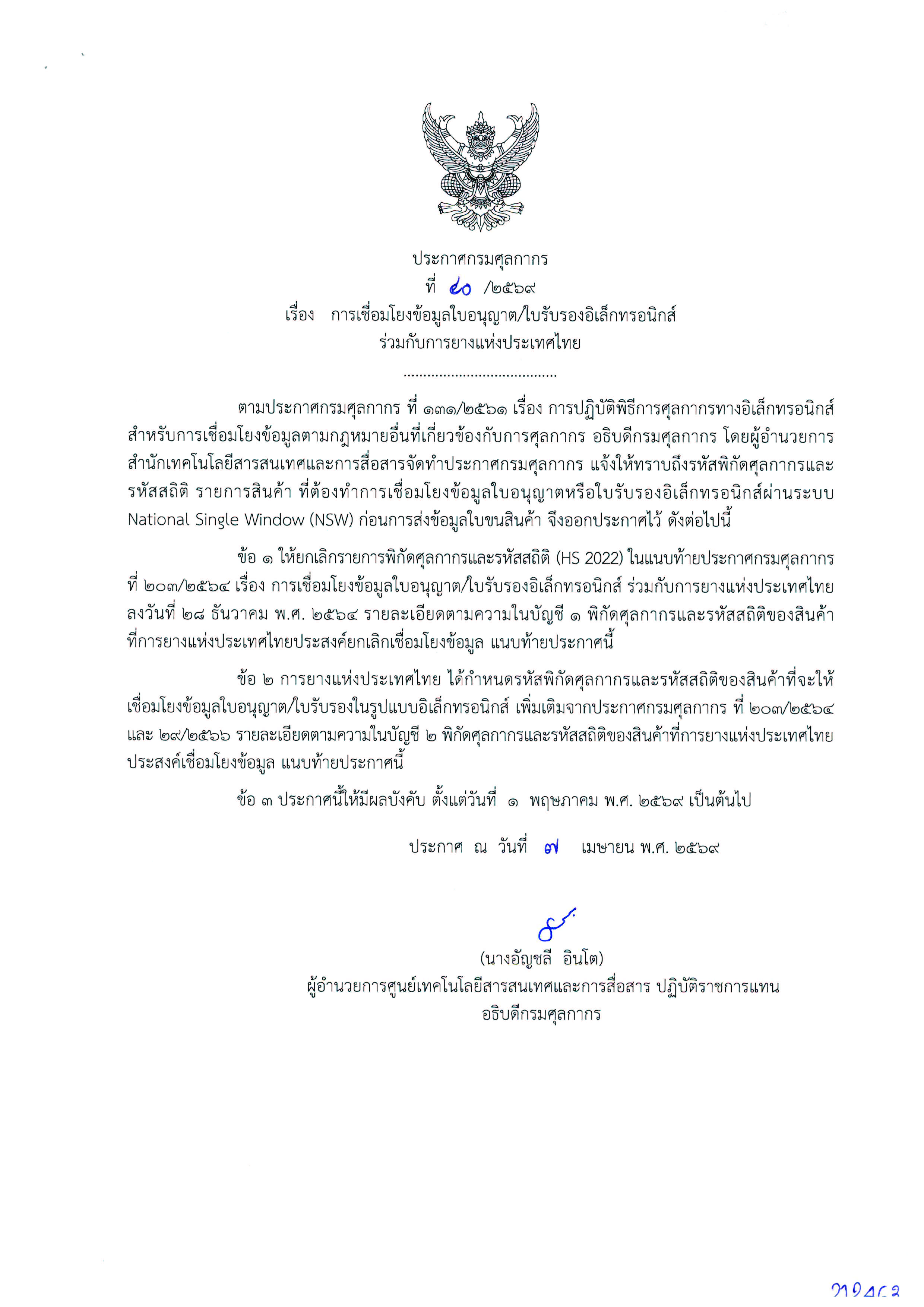 ประกาศกรมศุลกากร ที่ 40/2569 เรื่องการเชื่อมโยงข้อมูลใบอนุญาต/ใบรับรอง อิเล็กทรอนิกส์ร่วมกับการยางฯ