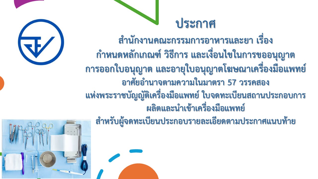 อย. กำหนดหลักเกณฑ์ วิธีการ และเงื่อนไขในการขออนุญาต การออกใบอนุญาต และอายุใบอนุญาตโฆษณาเครื่องมือแพท