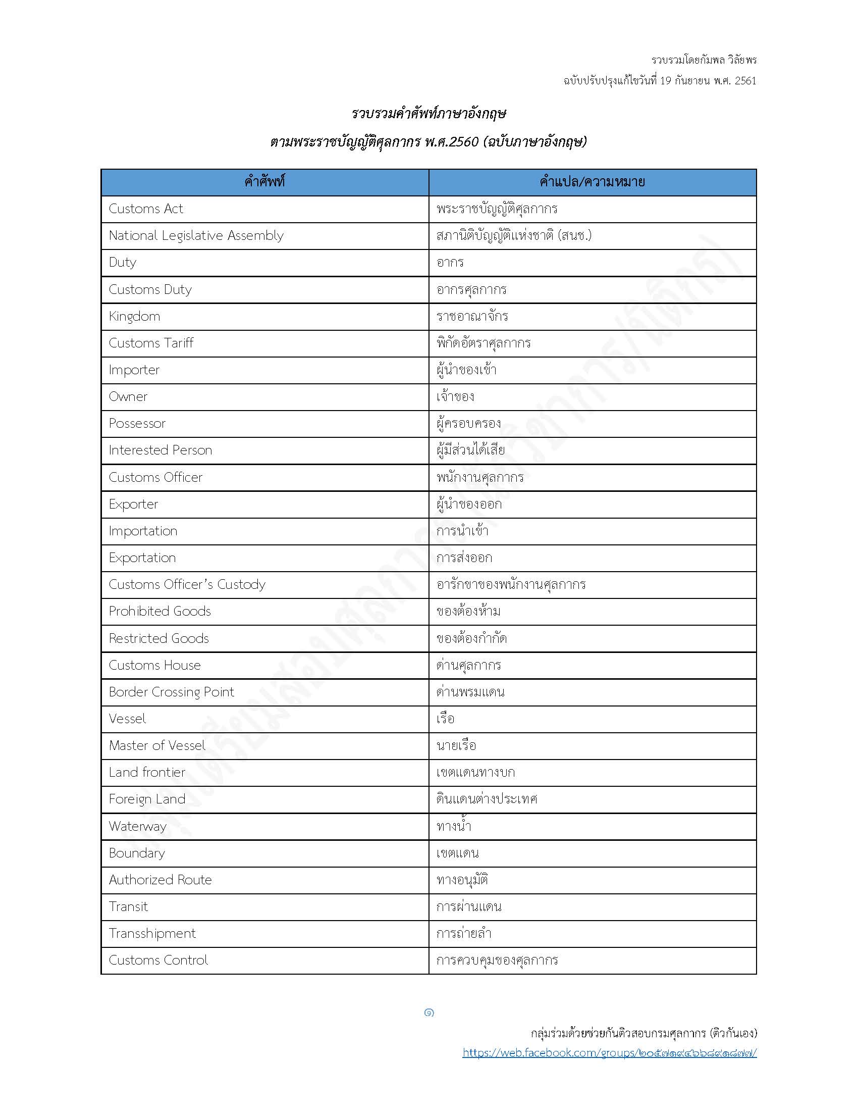 รวบรวมคําศัพท์ภาษาอังกฤษ ตามพระราชบัญญัติศุลกากร พ.ศ.2560 (ฉบับภาษาอังกฤษ)