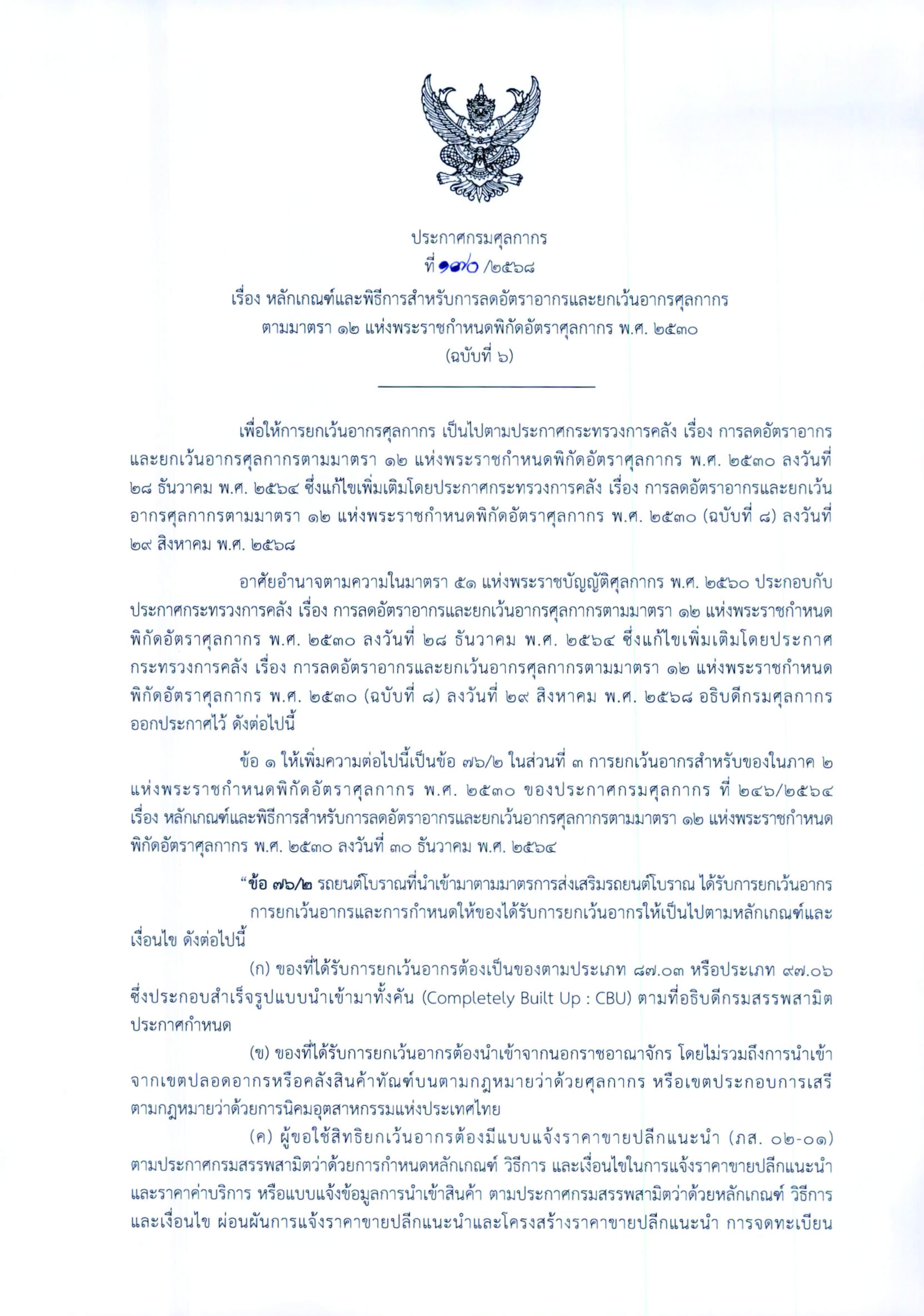 ประกาศกรมศุลกากรที่ 170/2568 เรื่องหลักเกณฑ์และพิธีการสำหรับการลดอัตราอากร และยกเว้นอากรศุลกากรฯ