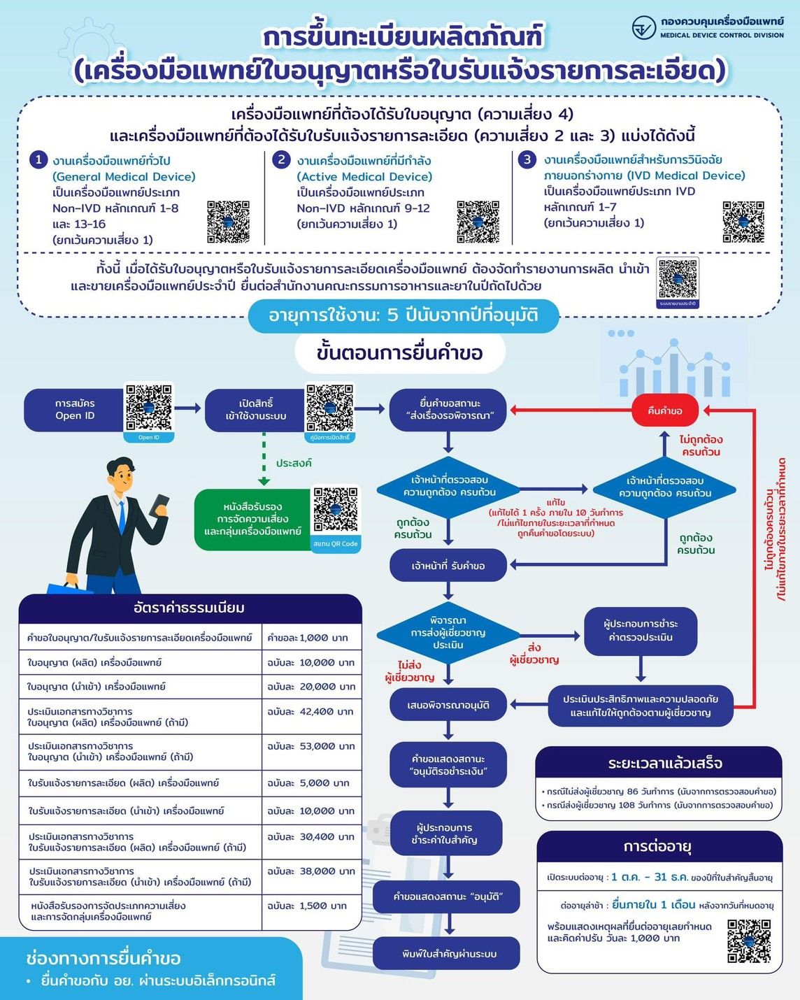 สำนักงานคณะกรรมการอาหารและยา ประชาสัมพันธ์ การขึ้นทะเบียนผลิตภัณฑ์ เครื่องมือแพทย์ใบอนุญาตหรือฯ