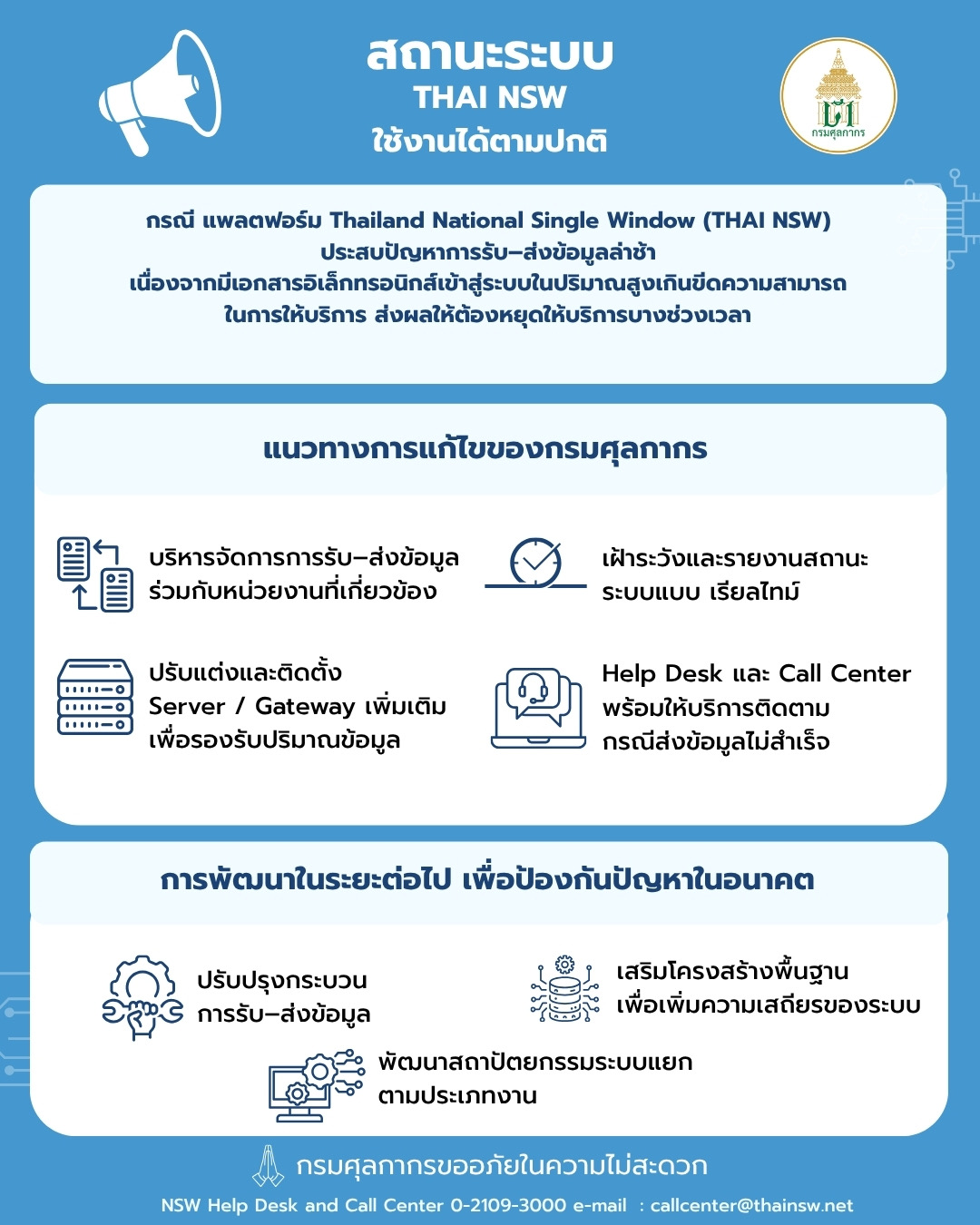📢 แจ้งสถานะระบบ THAI NSW ใช้งานได้ตามปกติ