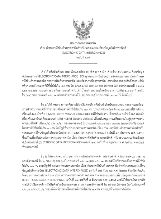 ประกาศกรมสรรพสามิต เรื่อง กำหนดรหัสสินค้าสรรพสามิตสำหรับระบบแลกเปลี่ยนข้อมูลอิเล็กทรอนิกส์ ฉบับที40