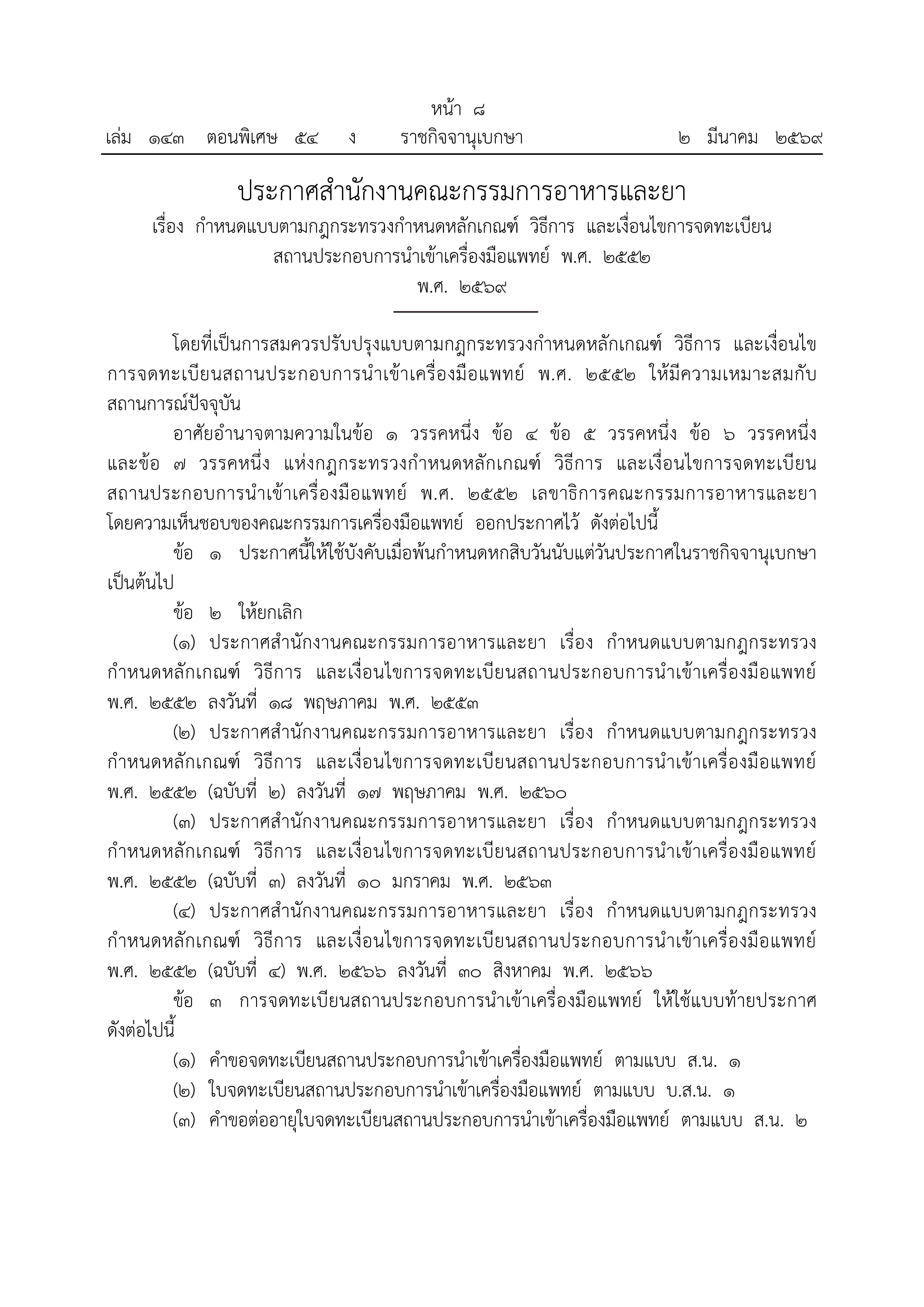 ประกาศสำนักงานคณะกรรมการอาหารและยา เรื่อง กำหนดแบบตามกฎกระทรวงกำหนดหลักเกณฑ์ วิธีการ และเงื่อนไขฯ